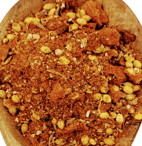 INGREDIENTS: CHILLI POWDER, SEA SALT, BLACK PEPPER, ALLSPICE, FENUGREEK, CLOVES, GROUND GINGER, NUTMEG, CUMIN, AJWAIN SEEDS, CARDAMOM, CORIANDER